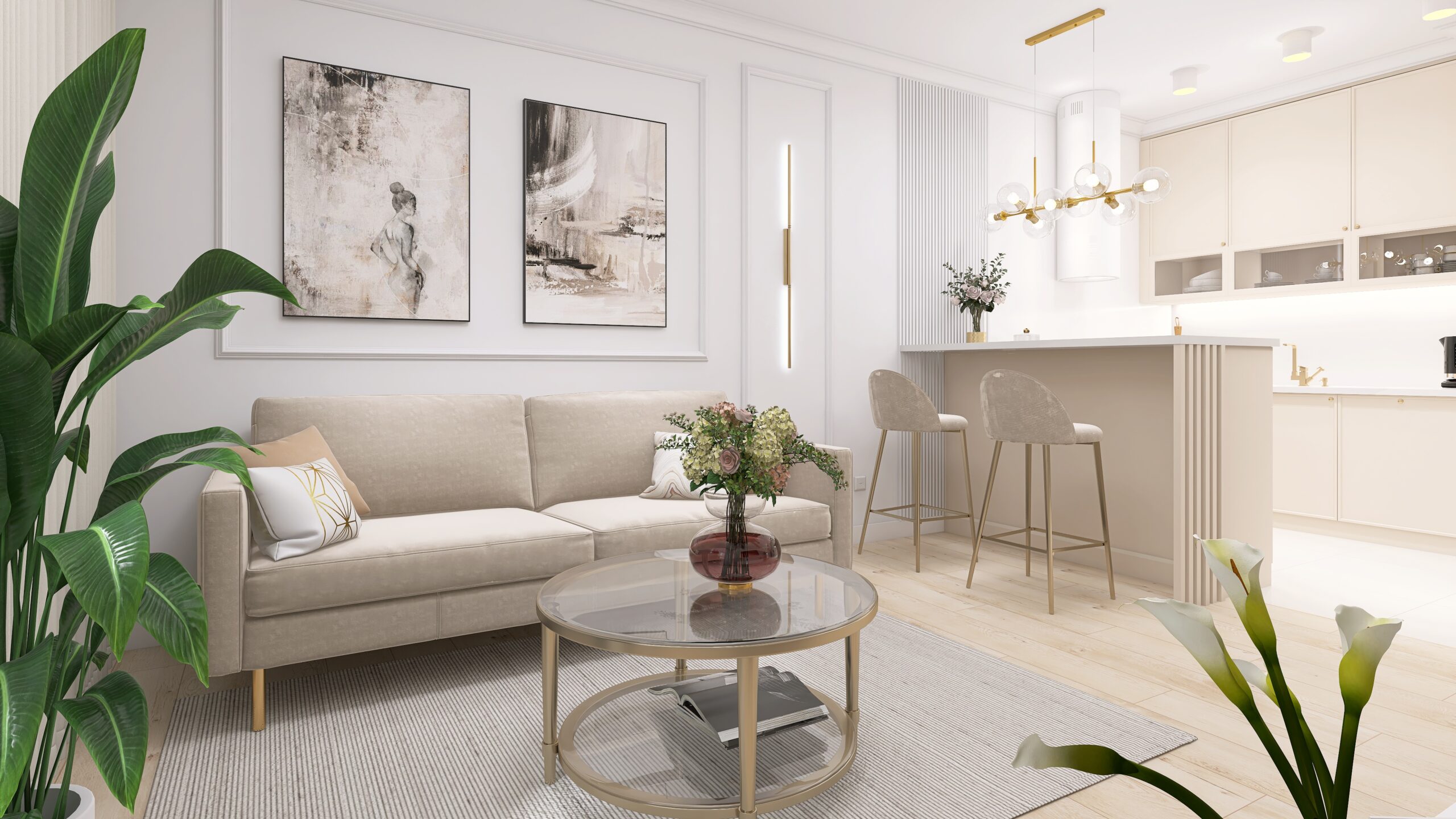 To wnętrze prezentuje elegancką, nowoczesną przestrzeń z wyraźnymi akcentem artystycznym, utrzymaną w stonowanej, ale wyrafinowanej kolorystyce. Dominują jasne, neutarlne barwy, beż, kaszmir. Kontrast zapewniają głębokie bordo i burgund. Dodatkową głębie wprowadza arystyczna tapeta w polne kwiaty, zapraszając do wnętrza klimat natury. To wnętrze sprawia przemyślanej eleganckiej i luksusowej, ale jednocześnie funkcjonalnej przestrzeni. Idealne dla osób…