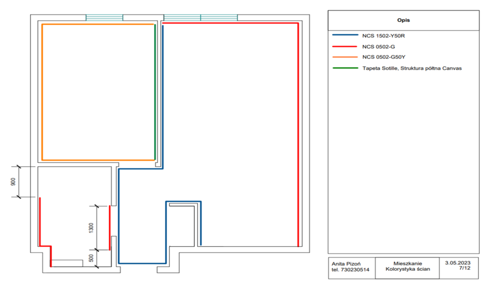 Projekt kolorystyki i dekoracji ścian to rysunki 2D przedstawiające, jakie kolory i wzory zostały zaproponowane na ścianach w danym pomieszczeniu. Projekt ten pozwala na dopasowanie kolorów do pozostałych elementów wystroju, co wpływa na spójny wygląd całego Twojego wnętrza. Dzięki tej dokumentacji nie musisz tracić czasu w sklepie na zastanawianie się jaki odcień bieli ma być na ścianie.
