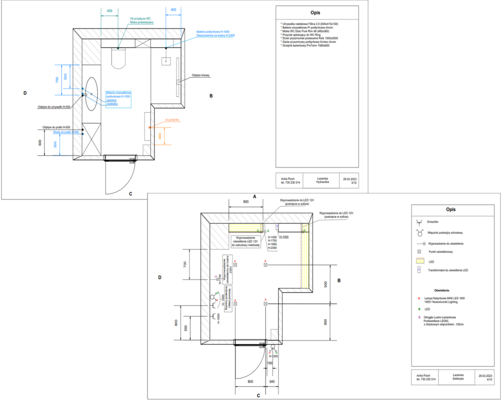 Projekt przyłączy przedstawia w formie rysunków 2D punkty wodno-kanalizacyjne, punkty oświetleniowe i elektryczne. Dokumentacja przyłączy jest to narzędzie, które ułatwia prace hydrauliczne i elektryczne. Odpowiednio rozplanowanie i przeanalizowanie tych przyłączy pozwala na uniknięcie późniejszych zmian lub uzupełnień w instalacji elektrycznej. Dzięki, temu Twój remont przechodzi zgodnie z planem, wg Twojej koncepcji a Ty oszczędzasz na niepotrzebnych przeróbkach i wykorzystanych materiałach.